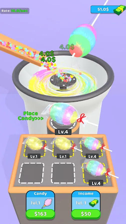πͺ Carnival of Fun: Immerse yourself in the carnival atmosphere, where joy and laughter fill the air. Experience the excitement of serving cotton candy floss s to a diverse array of customers, each with their unique tastes and preferences. Keep them happy, and they'll reward you generously which will help you grow your candy shop!