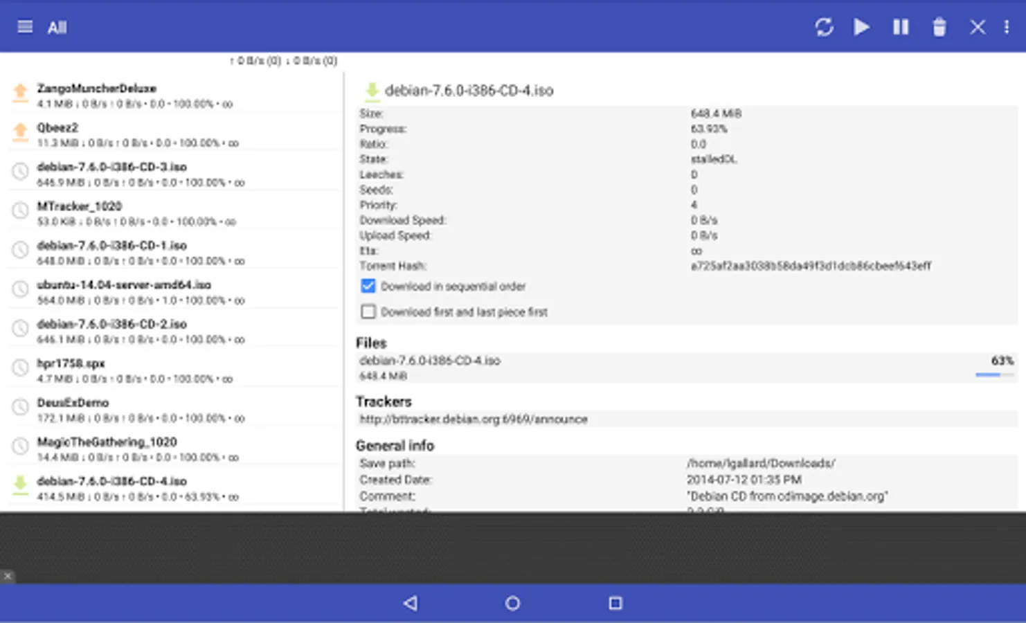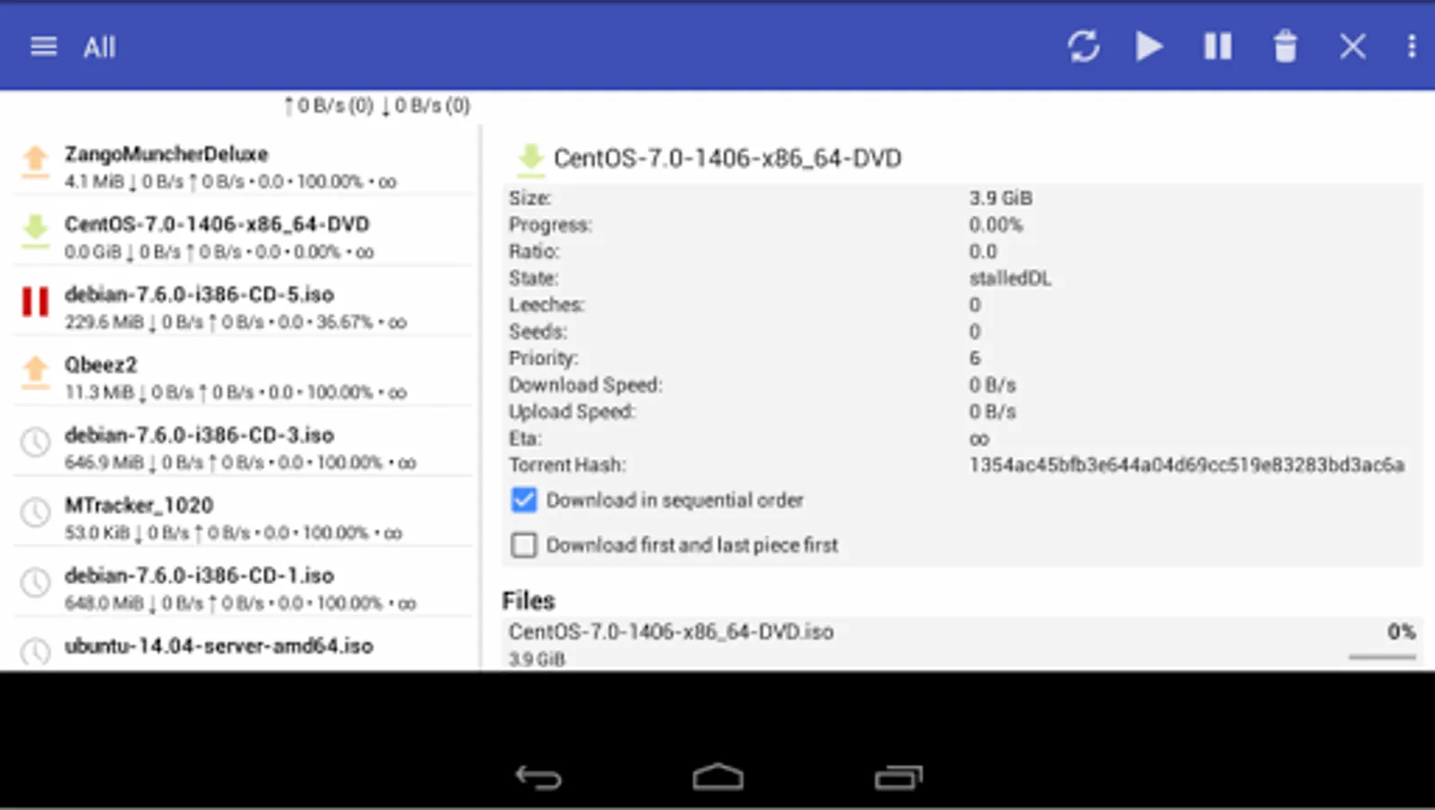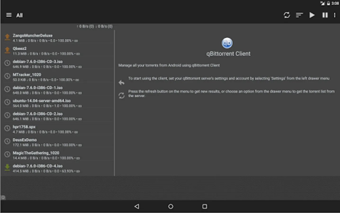 * Add torrents directly, by clicking the link on your device's browser or from downloaded .torrent files.