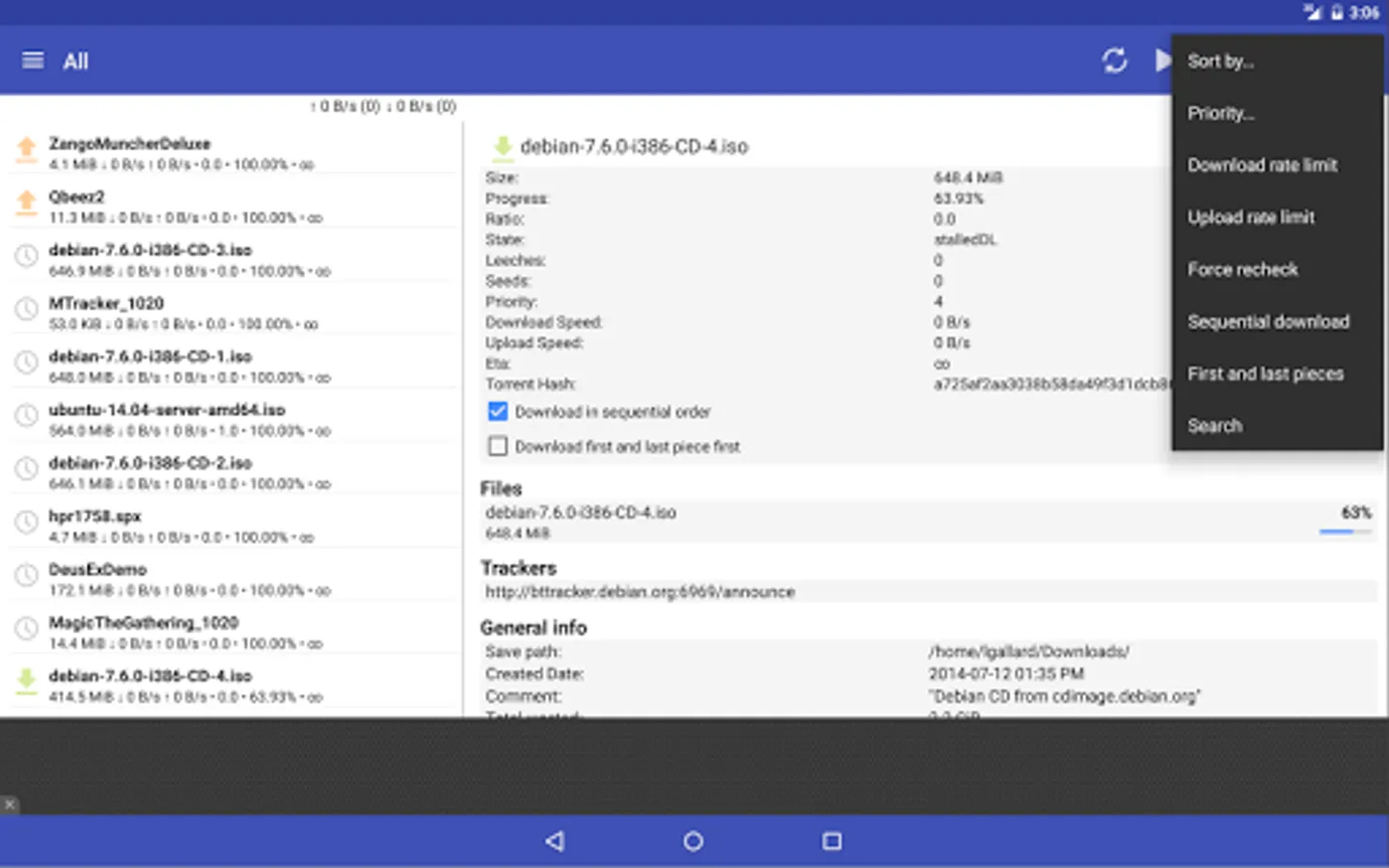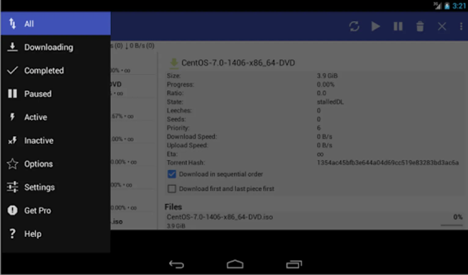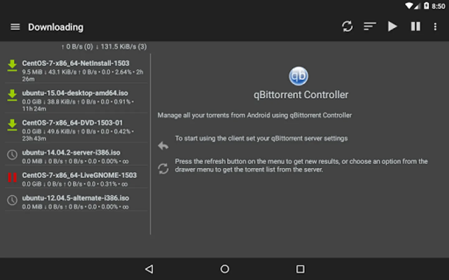 * Add torrents directly, by clicking the link on your device's browser or from downloaded .torrent files.