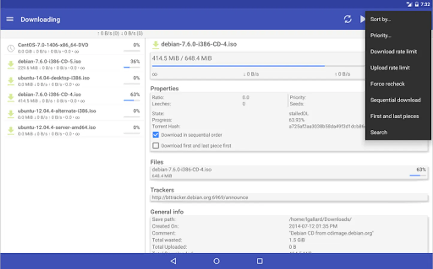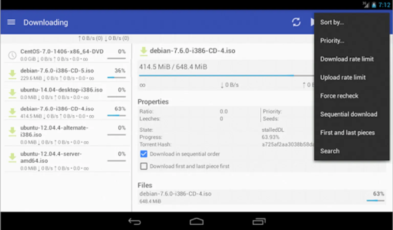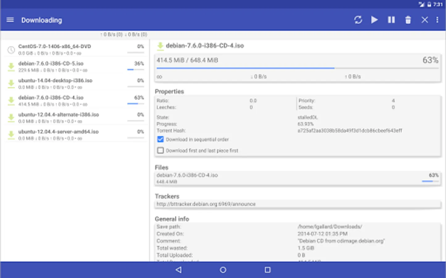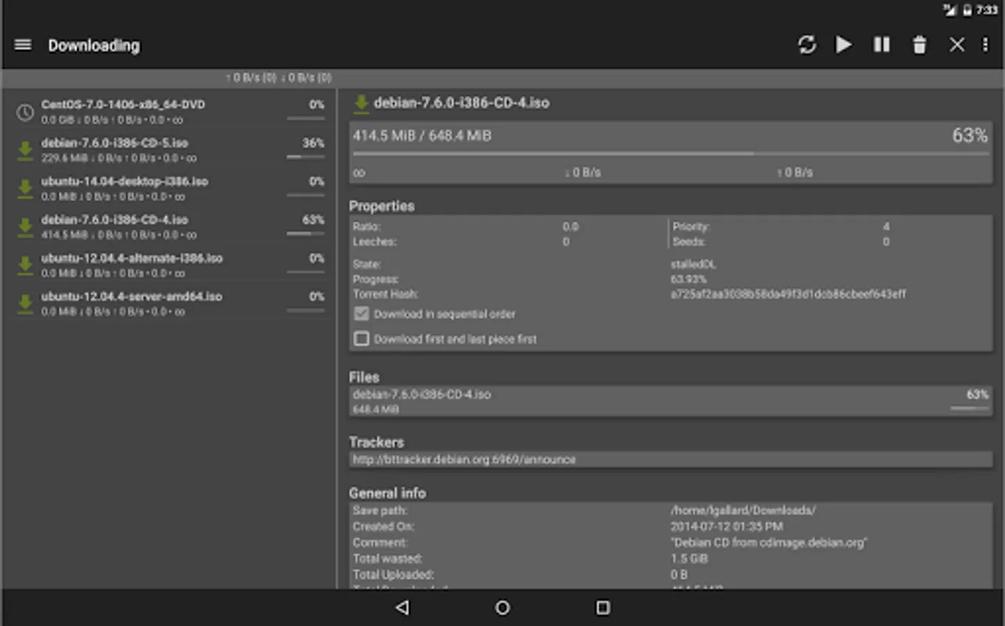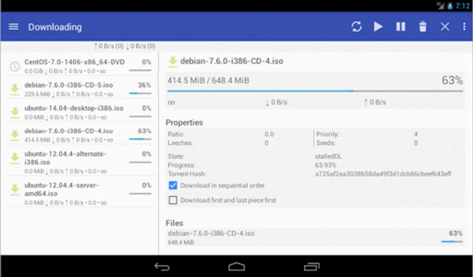 * Add torrents directly, by clicking the link on your device's browser or from downloaded .torrent files.