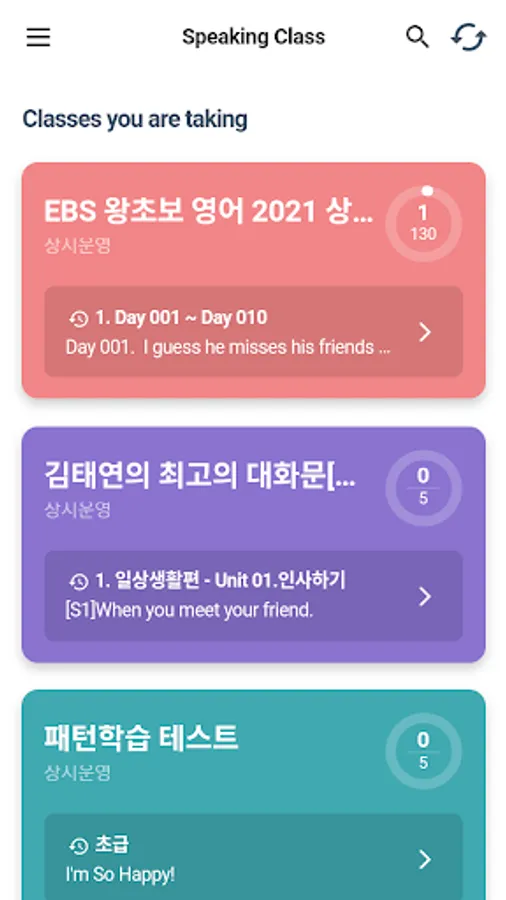 Therefore, if the class creator registers learning content in the studio, learners can learn the content through this mobile app.