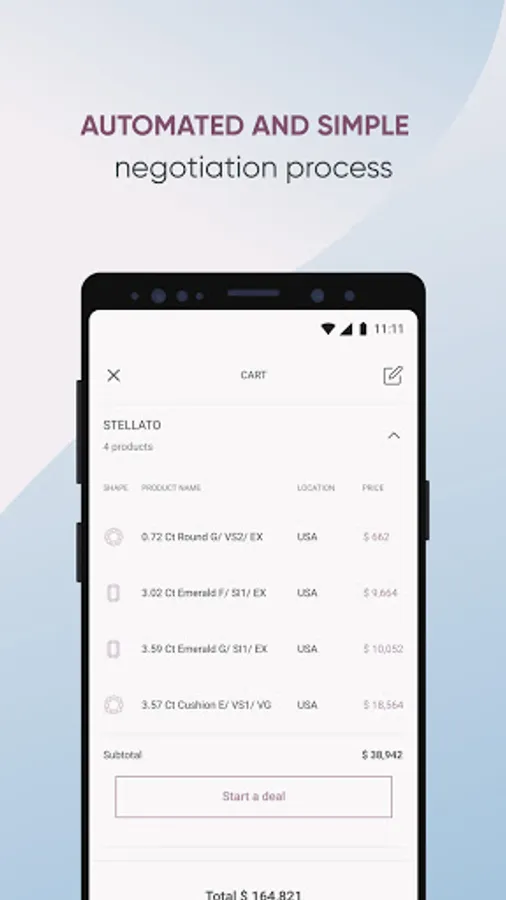 LGDeal is an online B2B marketplace for lab-grown diamonds. It is a platform for wholesale B2B trading between companies which supply and buy lab-grown diamonds. It is a convenient tool for getting new deals and managing sales processes.