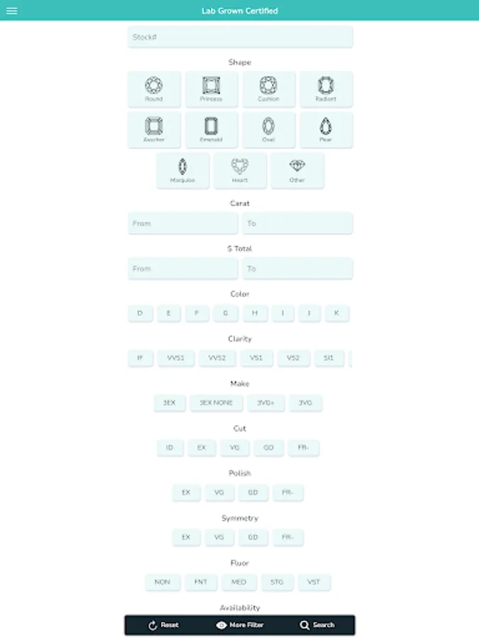 • Lab Grown: We have 7000+ exclusive lab grown diamond inventory.