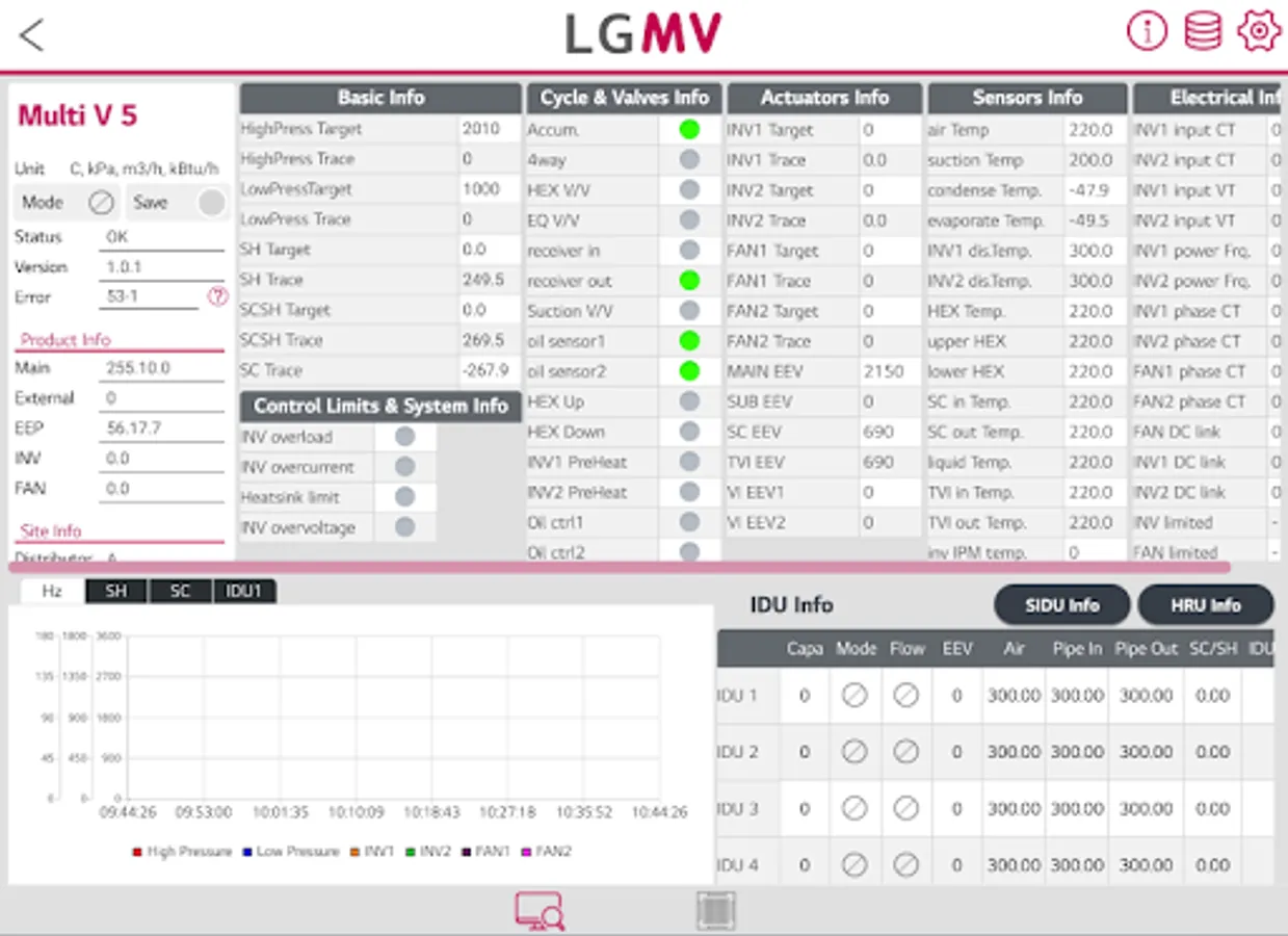 LGMV is designed to monitor the status of LG Electronics Air Conditioner products which helps engineers diagnose products and interpret refrigeration cycle.
