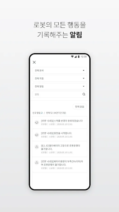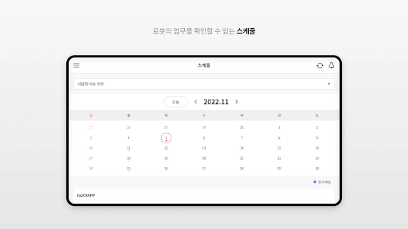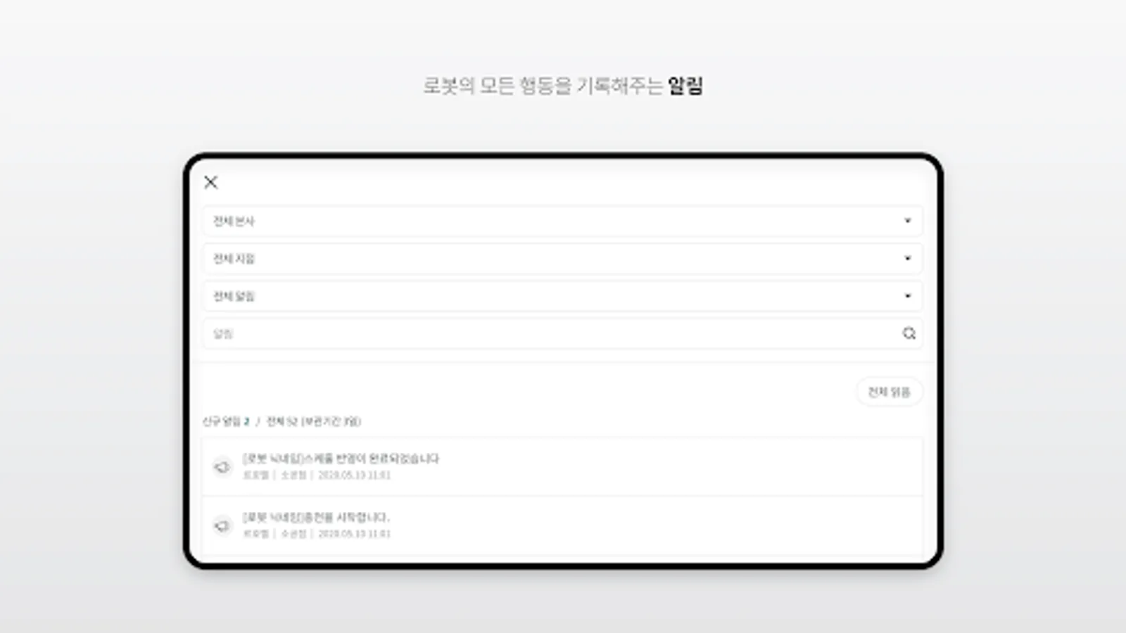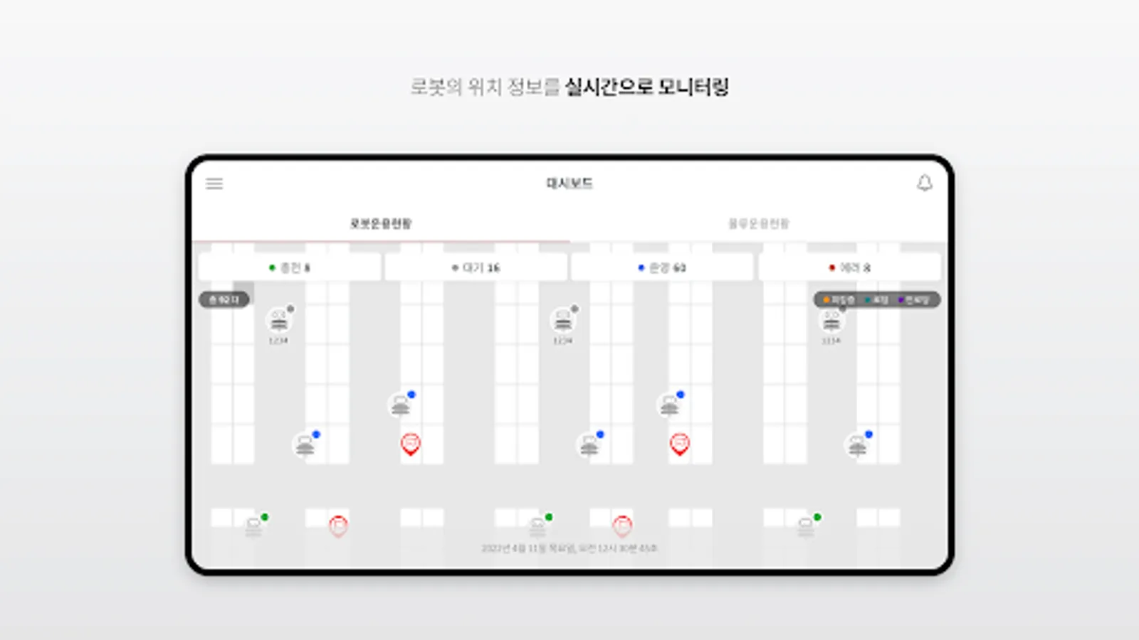 It is an app that allows you to identify the location and status of logistics robots provided by LG Electronics and receive notifications related to robot operation.