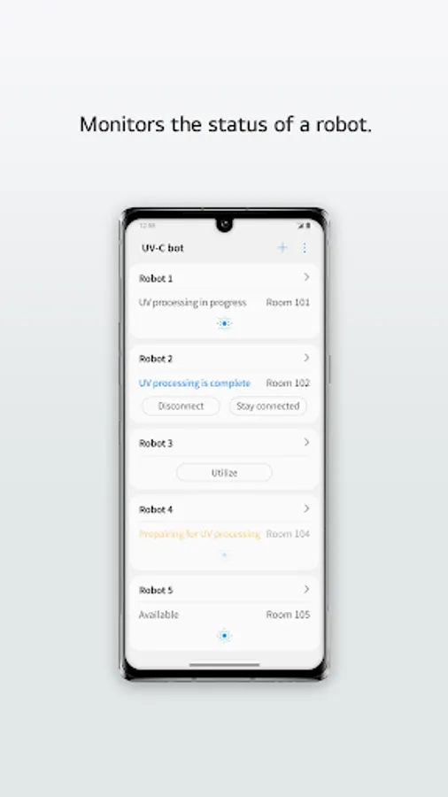 LG CLOi UV-C Bot is an app that can check the status of a robot, control and receive notifications.