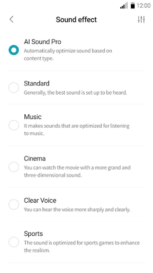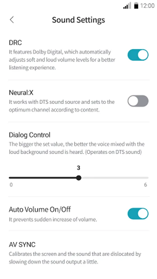 Through this application, the User can configure various features and control sound effects of LG Sound Bar.