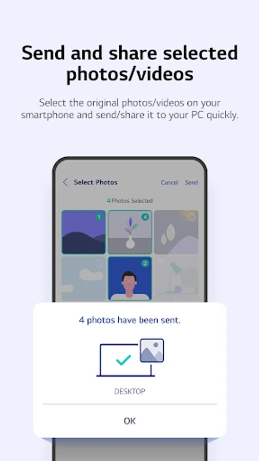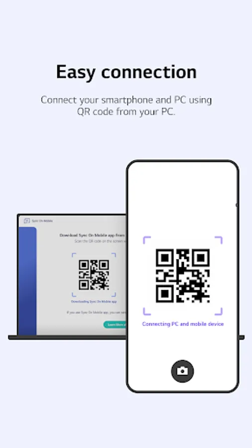 Run 'LG Sync On Mobile' on your PC then take a picture of the QR code to connect your smartphone and PC easily.