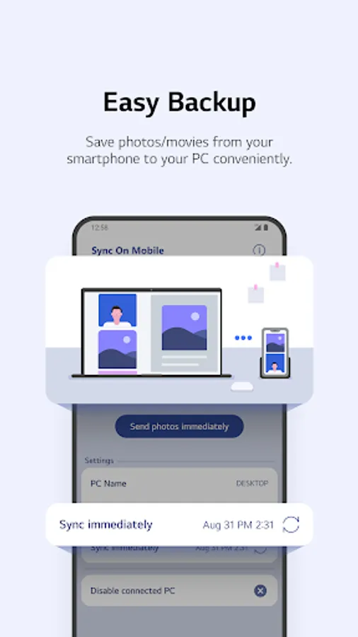 Save the contents on your smartphone when the PC boots through automatic synchronization.