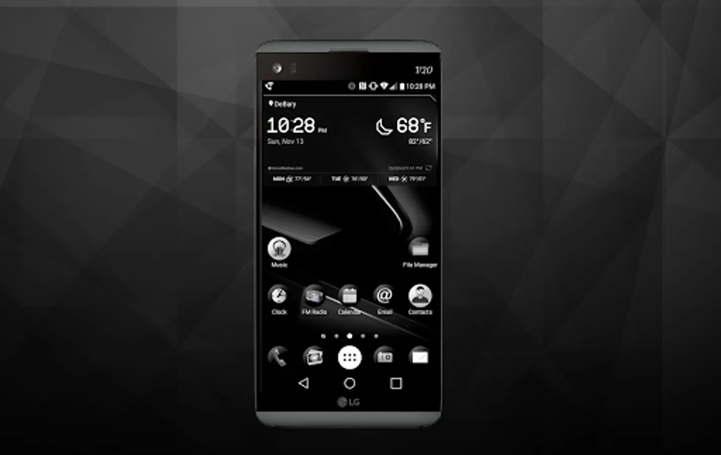 Full black and gray theme built for the LG V20 and LG G5. Custom black, gray, and white accents have been applied throughout the phone. Simply apply this theme in the chooser and enjoy the darker side of life.