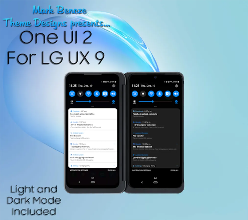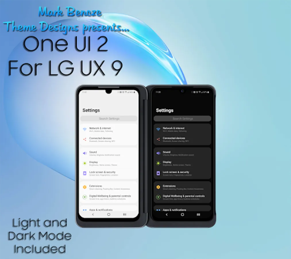 This is OneUI 2, an LG Home+ theme for your LG G8X, V50 (Android 10) UX 9. This theme is a premium quality theme like what you have come to expect. This theme supports both light and dark mode all in one. To activate one or the other simply go into settings, display and toggle night mode on or off. For best results after doing so reboot as your notifications may be impacted by this. This theme also supports adaptive icons. I recommend choosing "round" which gives you that nice look as show in the screenshots.