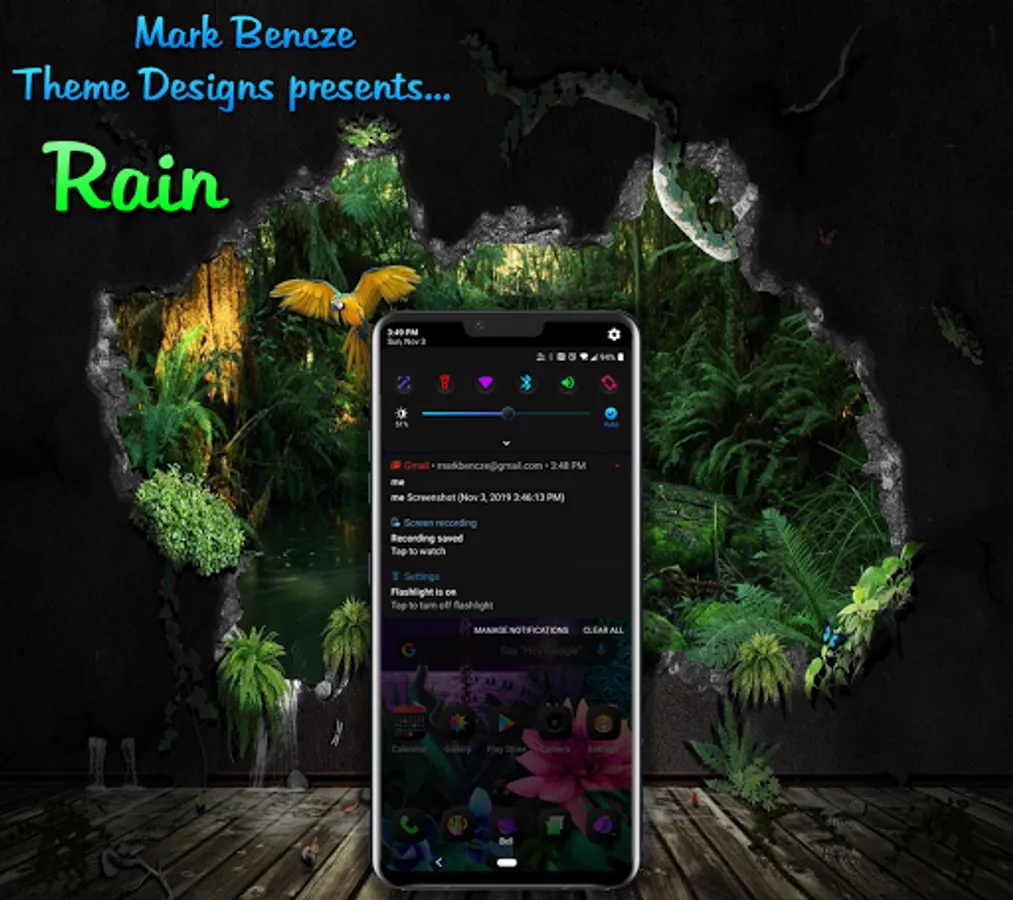 This is Rain, an LG Home+ theme for your LG G6, V30 running Android 9. This theme is a premium quality theme like no other Home theme+. What you see is what you get and that is quality and attention to details! Rain is a dark theme with some bright gradient accents throughout. The Dark Notifications compliment the ui and battery life! The app icons have a slight gradient to them, with some more noticeable than others. This theme does not support adaptive icons as some of the key features of this theme are blocked by enabling the adaptive icons. If you'd prefer adaptive you will need to use a third party launcher like Hyperion or Nova.