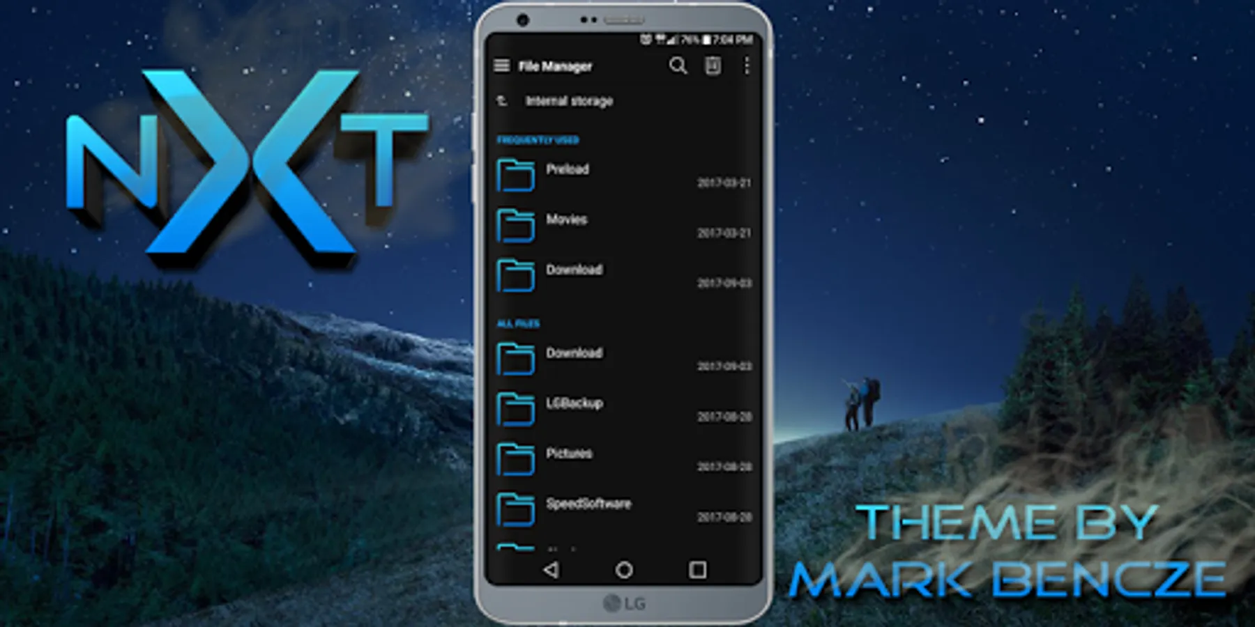Welcome to the nXt experience. This is unlike any other theme with designs no other designer has even attempted. You will notice that with this experience you have the illusion of a slightly rounded edge screen running from the top to bottom. You'll notice that not even the navigation or status bar interferes with this. This is an in your face theme with dark tones and rich blue accents. It is accompanied by rich icons with an exaggerated material edging and shading yet it still remains clean and in your face.