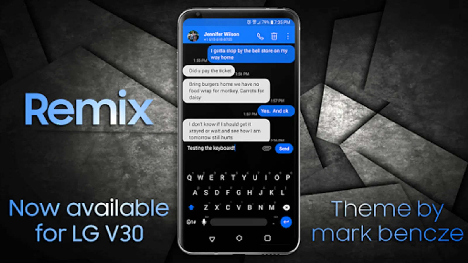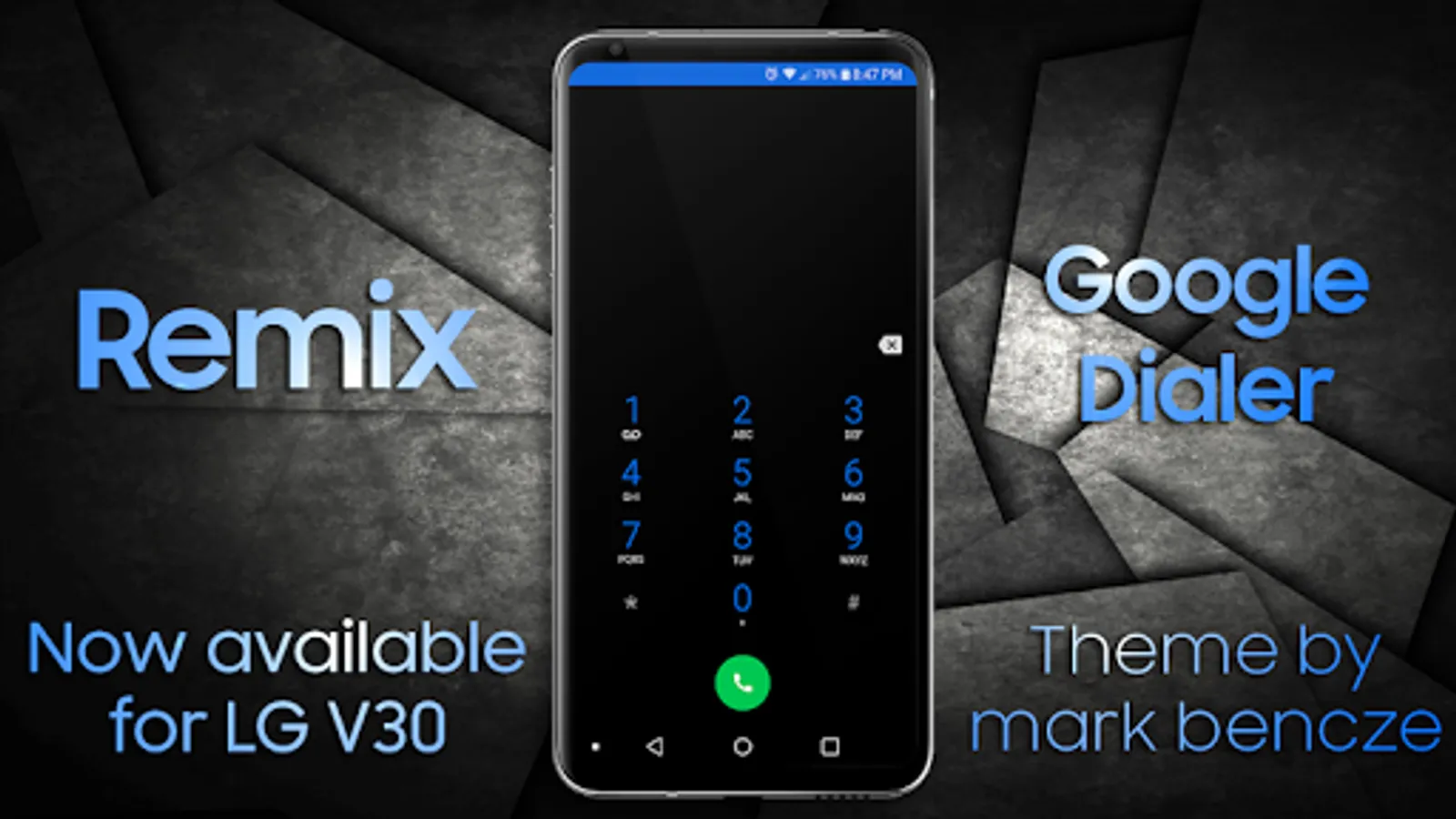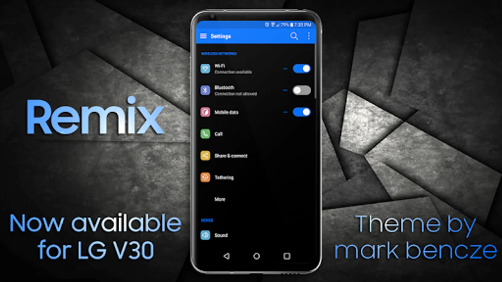 This is a dark theme for The LG system apps. You will find a refreshing crisp, clean look with a familiar material tone with a bit of added flair to create a unique look and enhance your user experience. You can expect to see dark tones with blue accents throughout and some fun icons to accompany them.