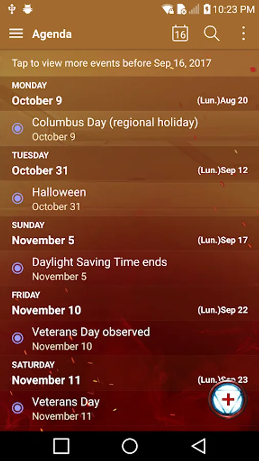 • Calendar app themed