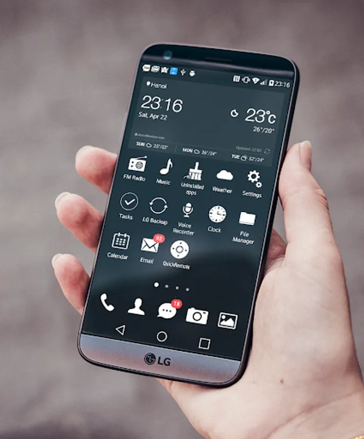 Simple Dark is one of most beautiful and clear theme for LG G5 V20 Oreo. You can apply the theme by going to settings, themes and selecting this theme from the selections available!