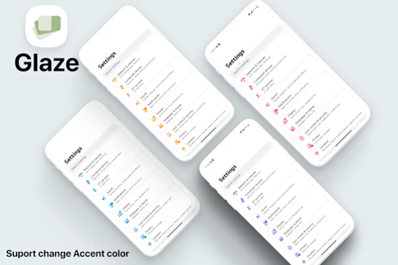 Glaze theme for LG Phone is designed with modern style, to give your phone a new vibrant look!