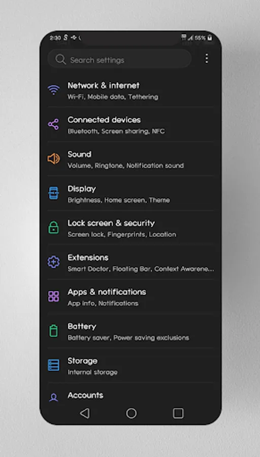 This theme is for the LG UX8 phone only include: LG V30, G6, V20 running in android Pie.