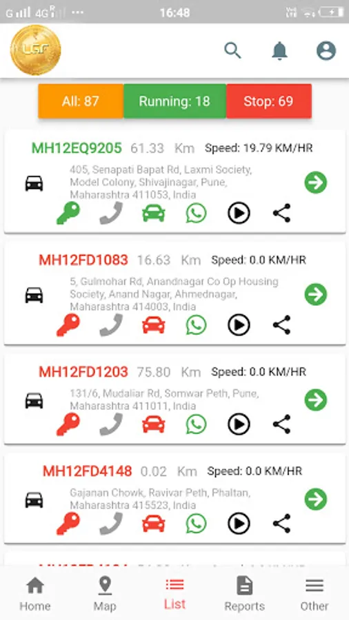 LGF GPS Tracking Screenshots