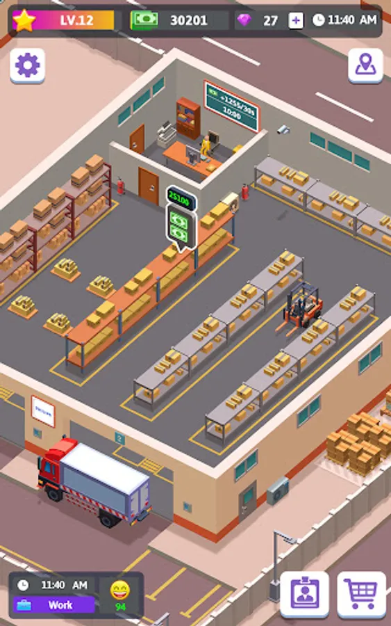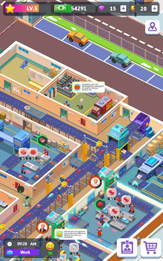 Highly productive employees are needed. According to your current demand and development strategy, fire and hire for these positions: processor, stevedore, maintainer, cleaner, and director. Every department does its part to keep the factory going. Optimize each department to increase productivity. Manage teams properly and earn as much revenue as you can.