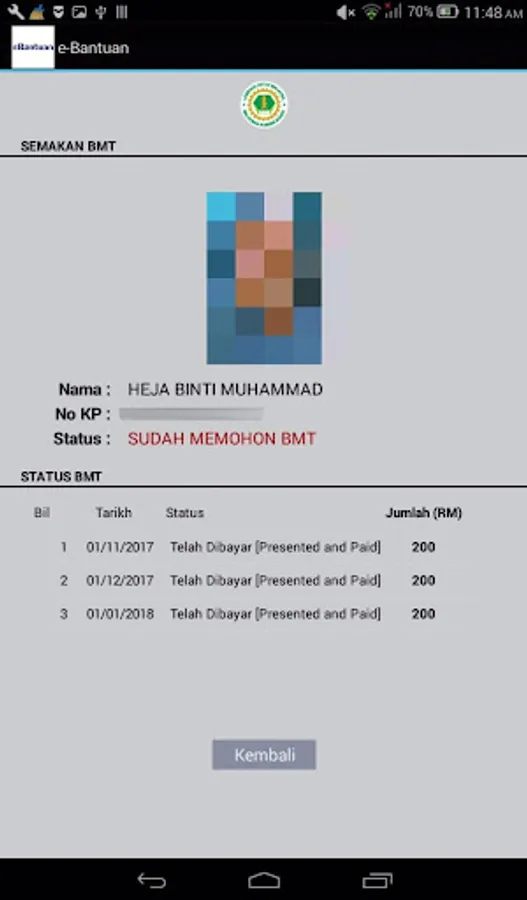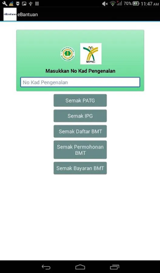 Aplikasi untuk menyemak PATG, IPG, Daftar BMT, Permohonan BMT dan Bayaran BMT