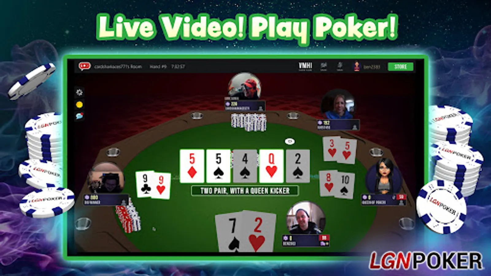 Missing poker nights with your friends? LGN Poker is an online Texas Hold’em poker game designed to be played over video chat. Think of it as an online version of a poker night in your home. Play poker, chat, joke, bluff, and even read your friends tells, just like playing in person.