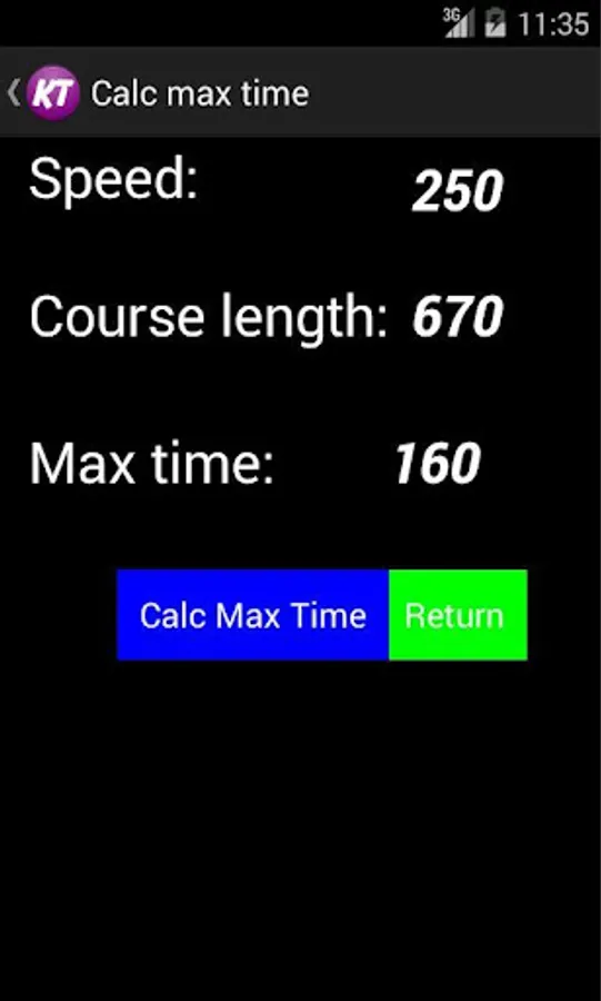 Also possible to do the measurement of maximum time from course length and the chosen speed on page two.