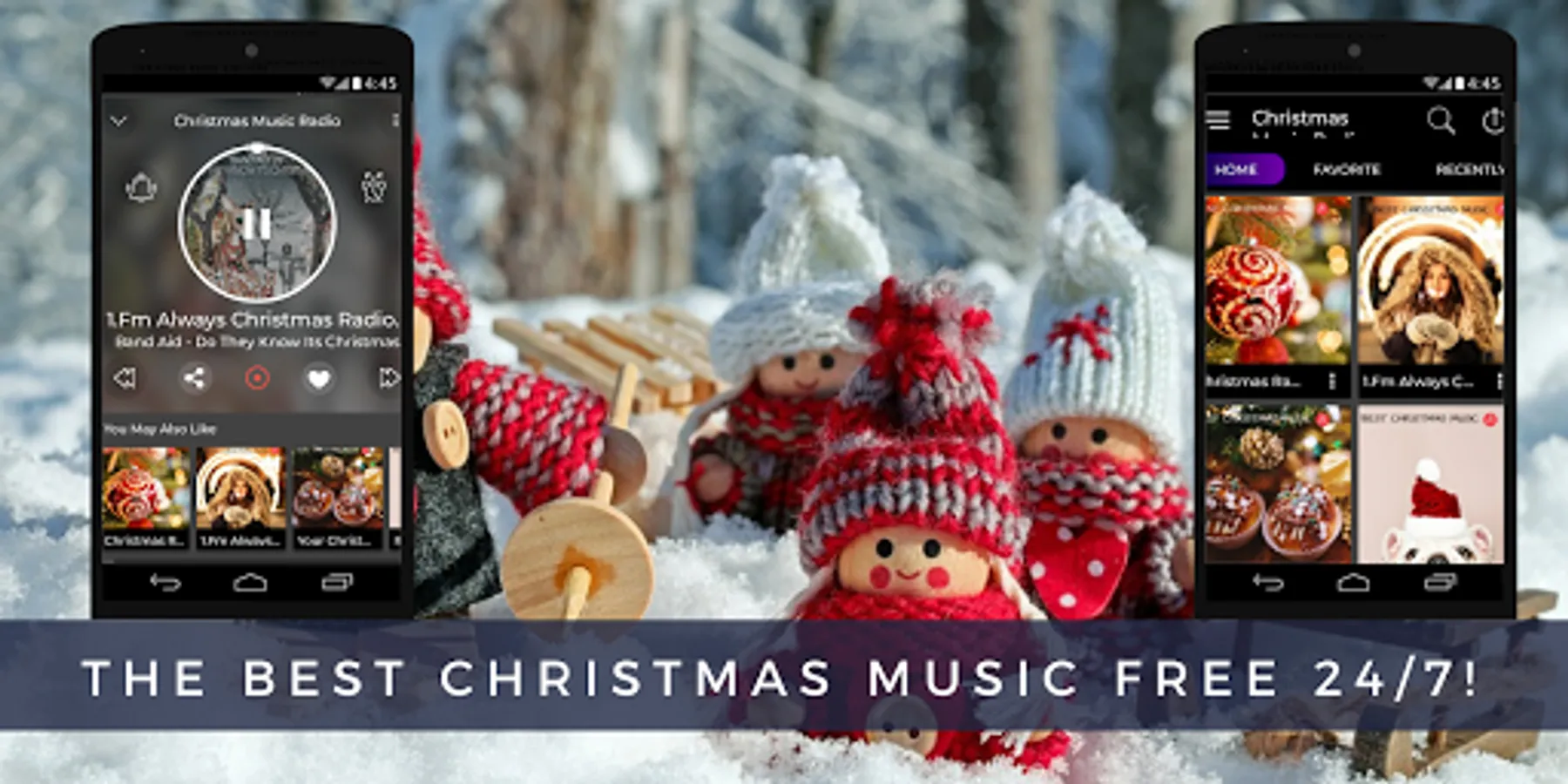 With "Christmas Music App Radio Stations Online Free HD", you can have a modern radio station tuner and listen to christmas carol, instrumental songs, rock, jazz, classics and more on your Android Smartphone or Tablet.