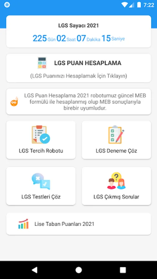 Thanks to the application, you can calculate the LGS score, which is compatible with the MEB, without using the internet, without the need for the internet, and you can see how many days are left until LGS 2023 with the LGS counter.