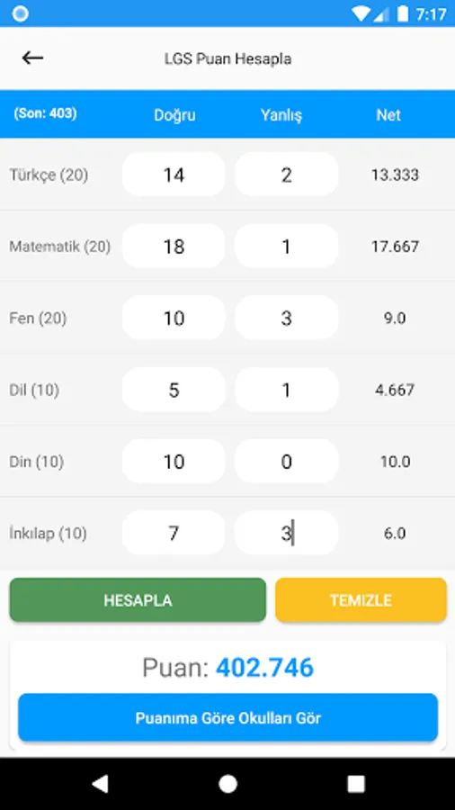 As a result of your calculation, you can see which high schools you can go to with the LGS score you get.