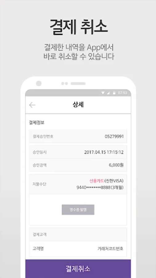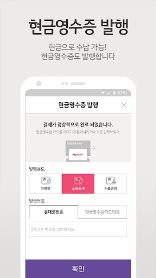 Receipt issuance is possible through SMS and Email without installing a separate printer.