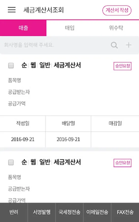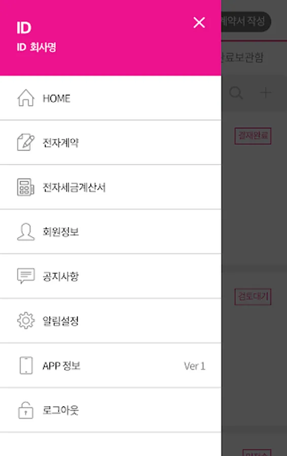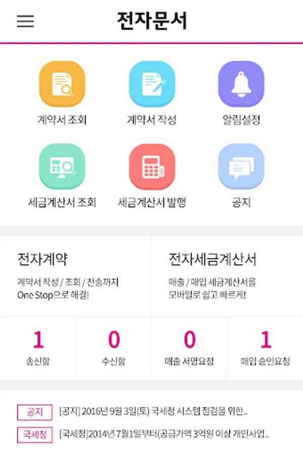 Tax invoices, orders (orders), standing, trading statements, a service that provides convenience to customers, such as off-line electronic document based on a qualified certificate document by shortening working hours and costs of such contracts. Now, via a PC, smartphone, tablet PC device, anytime, anywhere can easily and quickly access the electronic contracts, electronic tax invoice features.