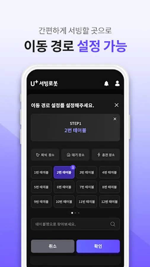 - You can remotely move/stop the robot to the table to be served, the waiting area, the dinner area, and the charging area.