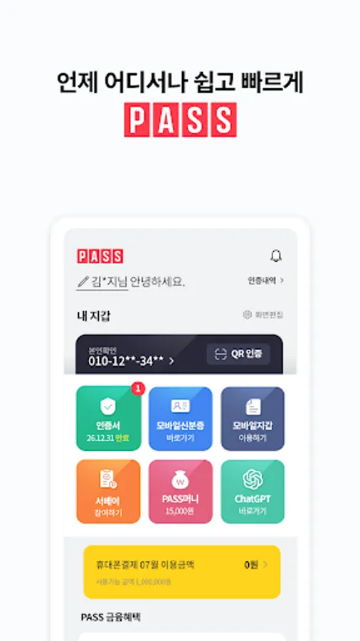 -Resident registration card mobile verification: You can register the information contained in your resident registration card in the PASS app to verify your identity without a real resident registration card. Authenticity verification is completed when the institution/verifier reads the QR code offline.