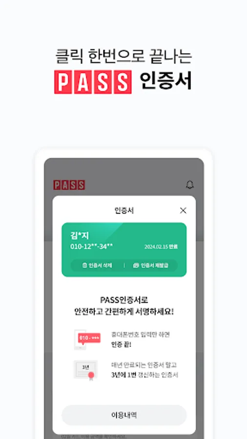 - PASS certificate: You can receive and use a certificate after completing identity verification and account verification under your name. The issued certificate is valid for 3 years.