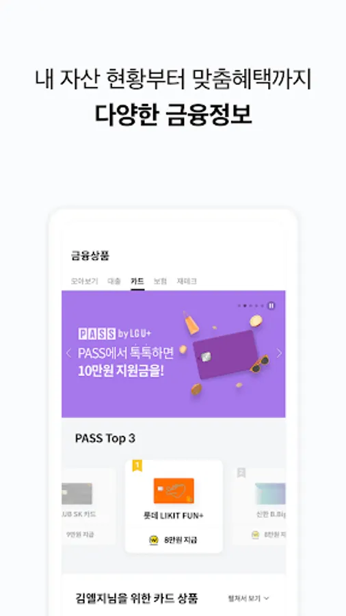 -Confirm authentication services such as simple identity verification, mobile identification (driver's license, resident registration card), PASS certificate, and benefits and asset information suitable for you in your wallet at once.