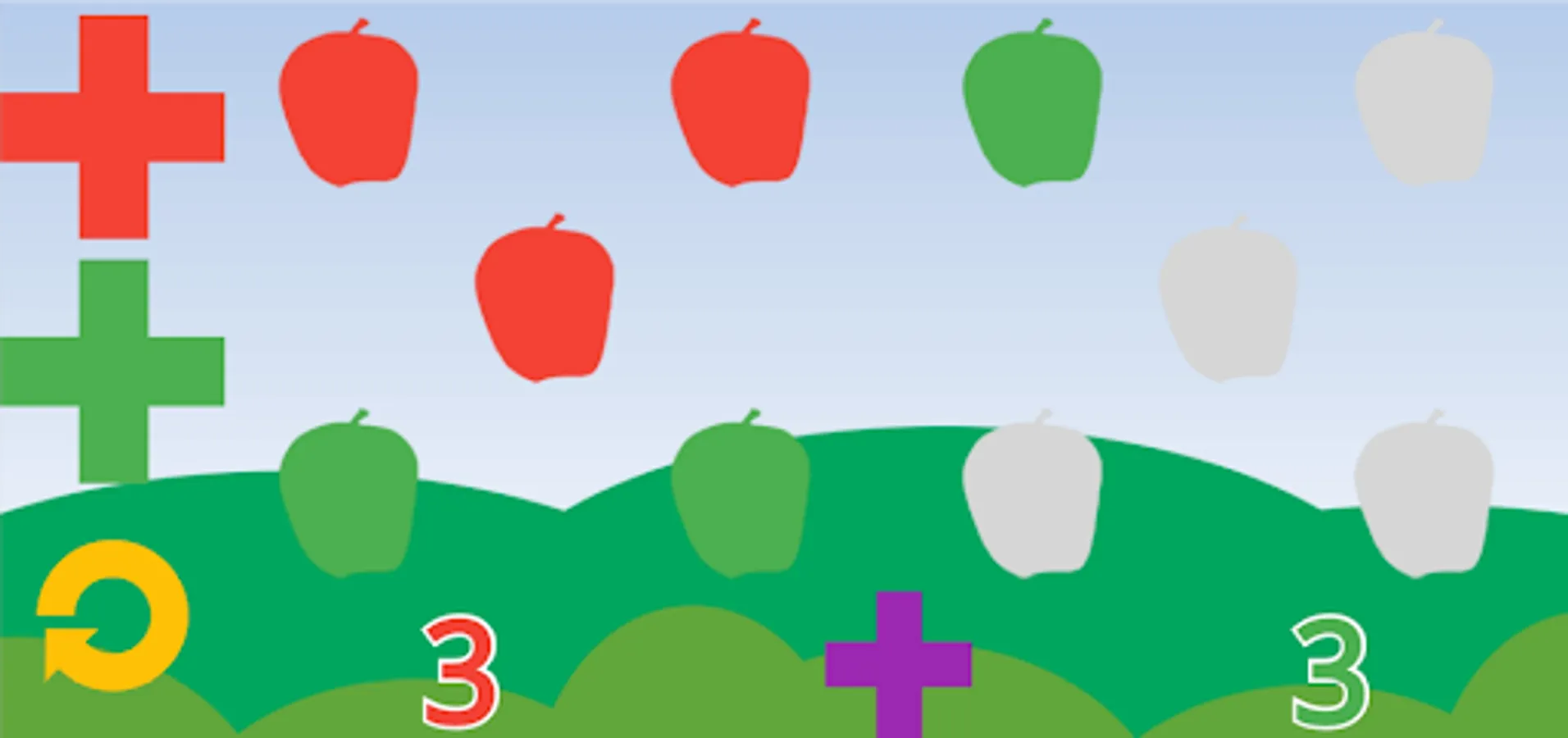 The ability is used so that children of preschool age can capture the cube image simultaneously. The arrangement of the apples was selected based on this. This app is particularly suitable for children with dyscalculia, as they can capture many things simultaneously, but not calculate. With the app, they can take part in school lessons despite their lack of numeracy skills, without the need for additional personal support. Accordingly, the children can experience themselves as self-effective.
