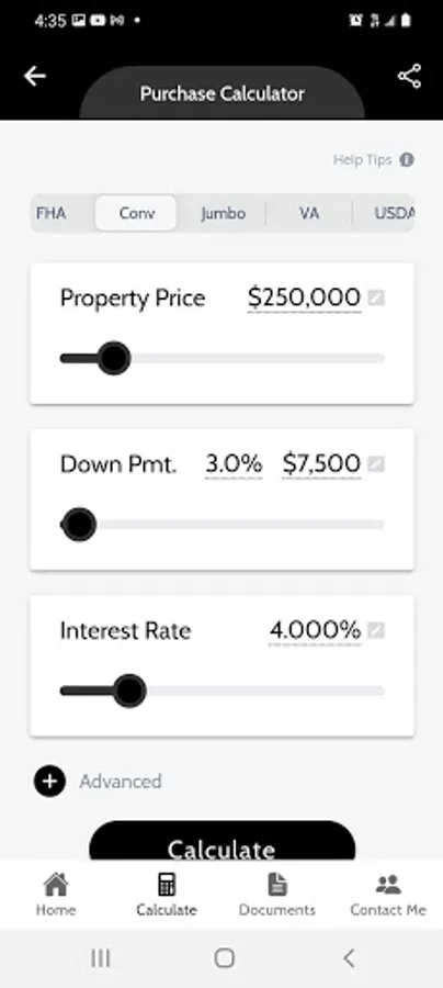 FHA, Conventional, VA, USDA and Jumbo calculations INCLUDING: Mortgage Insurance (MI), HOA, Hazard Insurance and Property Tax components! Explore the home buying process with the Step-By-Step Guide or determine which program is right for you. Receive professional advice and updates on the go with direct messaging and push notifications.