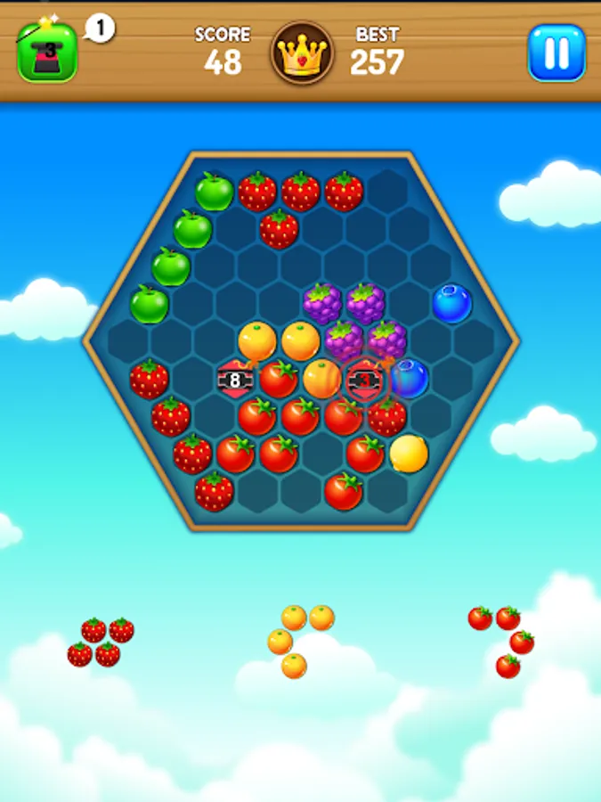 Candy Fruit Block Splash is a true brain puzzle game, if you ever love hexa dash, hexagon crush, dots blitz or similar ones, you will love this game.