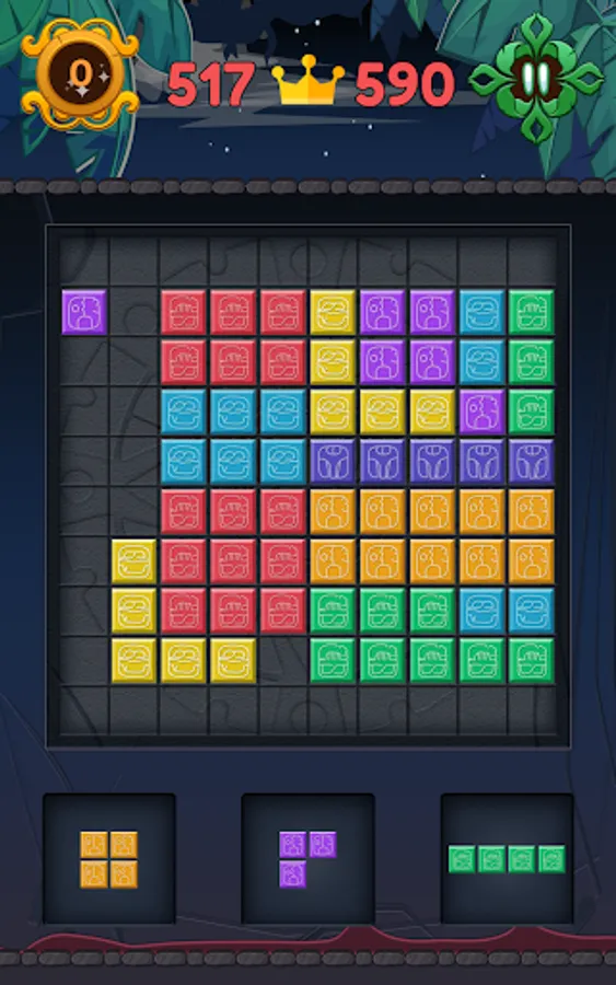 Like other physics puzzles games, the rule for 100! Block Puzzle is quite simple: choose to place colourful stones in order to create and clear full lines on the screen both vertically and horizontally, get points and unlock achievements. The game continues as you can make moves, so be noticed to keep free space for new stones.