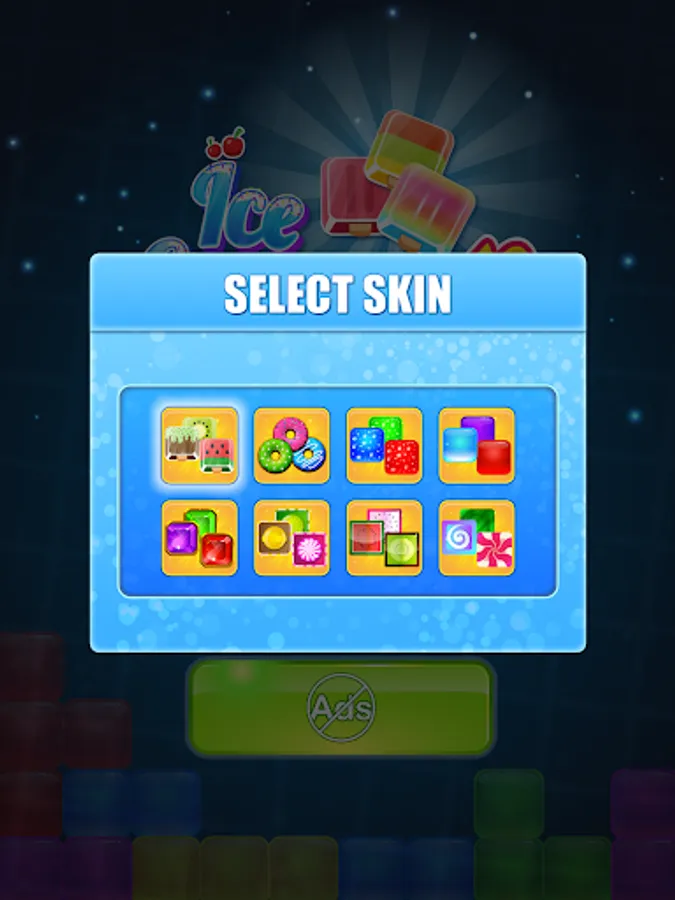 Our game shipped with 8 unique skins, such as candy skin, lollipop sweet crush skin, strawberry ice cream sandwich skin, fruit candy garden skin, bricks classic skin and another beautiful ones!