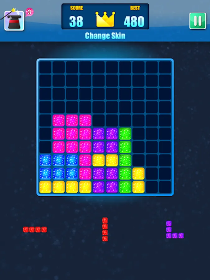 • Try to fit them all in the row or column. Then the block will be clear and you get the point. Game will be over if there are no room for any the shapes below the grid.