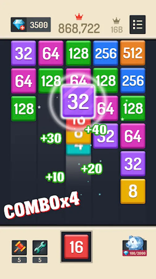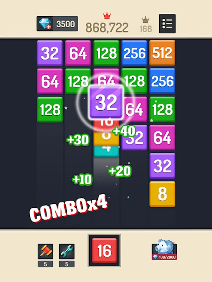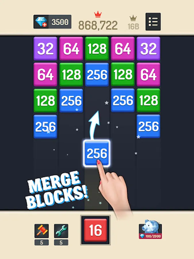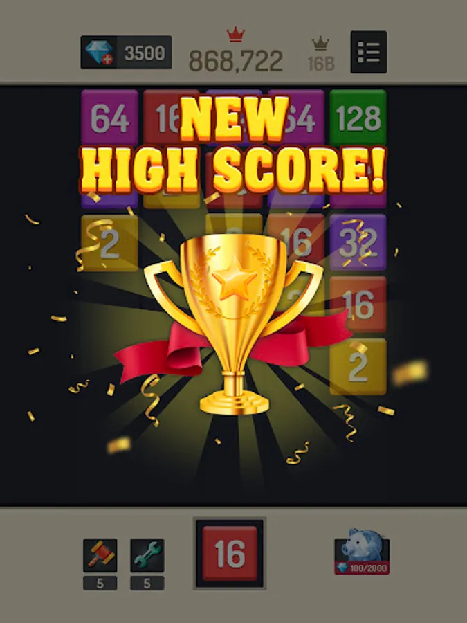 Tap, shoot and merge x2 block up to 2048 and more. More you yield, more points you get! 2048 is SUPER addictive puzzle game.
