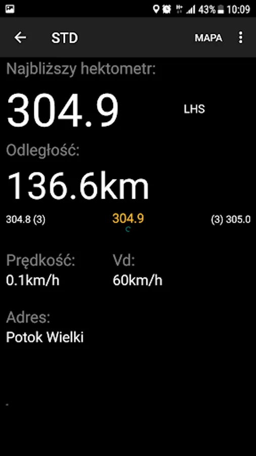 The application also informs about traffic on the LHS and adjacent standard-gauge routes based on information from users.
