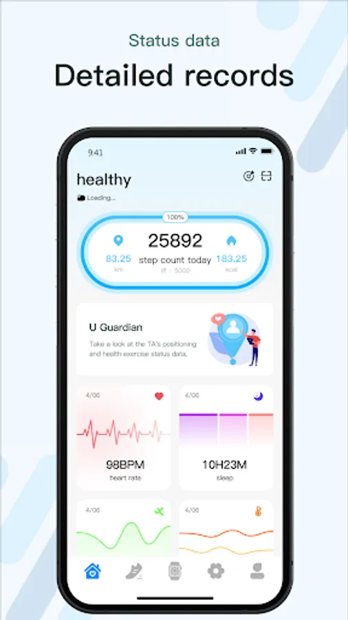 Keep an eye on your health by recording and visualizing your daily activities, heart rate, sleep data, etc.