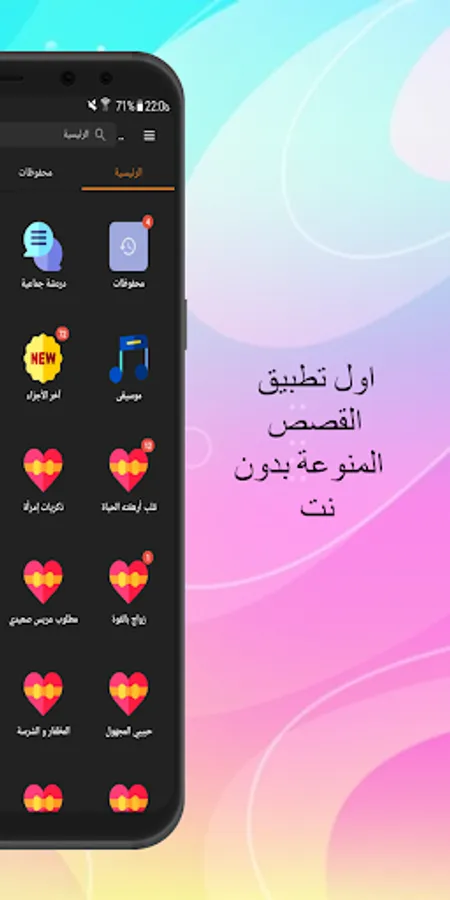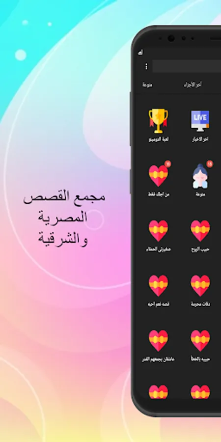 The Egyptian and Oriental Stories Complex application: It is a comprehensive application for stories and the first application of diverse and long stories. It contains different types and varieties of stories and novels.