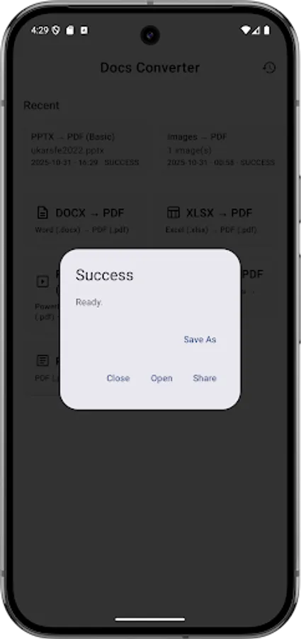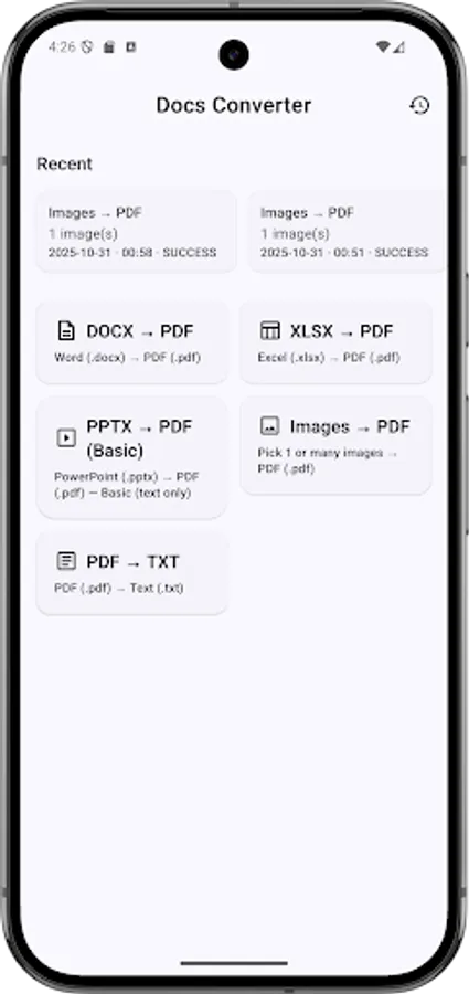 Make clean PDFs from your files in seconds. Docs Converter turns Word (DOCX), Excel (XLSX), PowerPoint (PPTX), and Images into high-quality PDFs and can extract Text from PDF when you need it.
