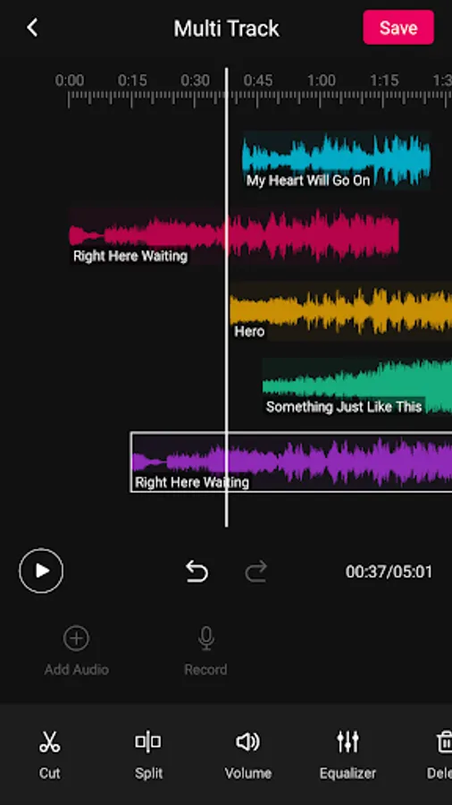 Just like audacity or fl studio, this app will let you Add multiple tracks & audios to merge music. Merge music or make music jam, combine multiple audios with very easy to use and beautiful UI. Split audio to multiple parts. Autosaving projects