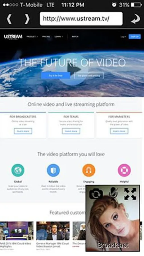 If you are looking for a mobile video streamer which would allow you to do live video streaming from your smartphone or tablet while being or ot logged into any website, Camlink Broadcaster has the perfect solution. Simply navigate to the website of your choice with Camlink's built in web browser and click on Broadcast. Then enter any RTMP server URL to broadcast live video to that server while logged into the website, and press Start. Now your broadcast will be seen on the website you are streaming to, just as if you were streaming from your PC.
