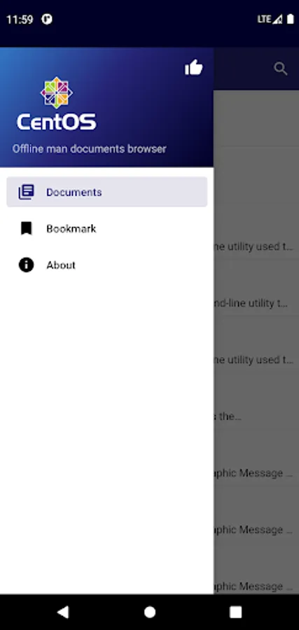 CentOS Doc is exactly your choice. It packs almost all the documents from official DVD iso images (http://mirror.centos.org/centos/8) into the app. When searching or reading the doc it does not require any android permissions, supports full-text search, no ads, find in page, click on related documents to jump, bookmark. Those convenient functions allows you to read man doc more efficiently, quickly and intently.